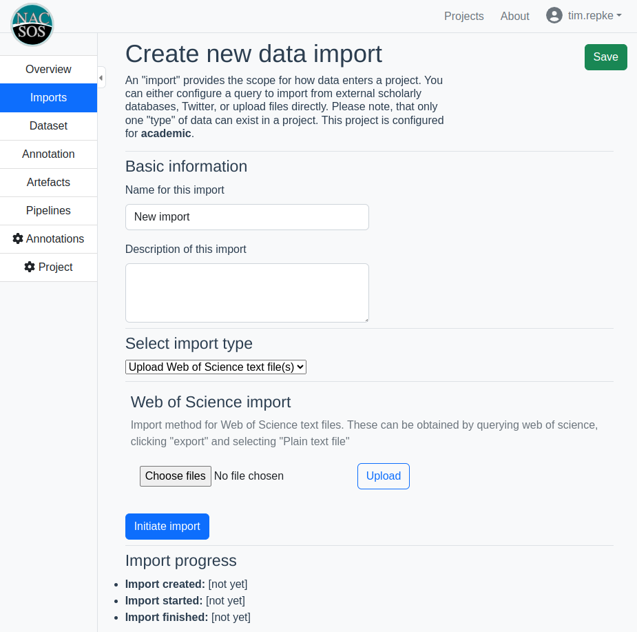 There is no direct import from Web of Science on the new platform, yet. For the vast majority of projects, the time spent on constantly fixing and maintaining a scraper far outweights the time spent on downloading a few files.