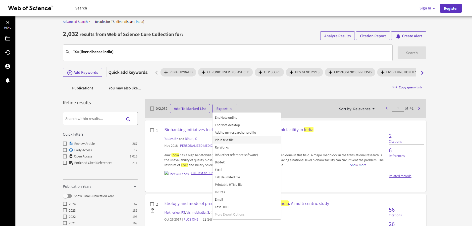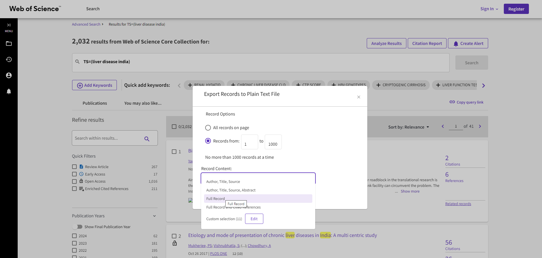 Once you downloaded the "plain text file" with "Full Record" exports, you can upload those to the platform. You can either use the script below or the web interface.